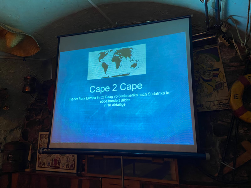 Vereins- und Vorstandsmitglied Stefan hielt einen bildreichen Vortrag über seine Reise mit der Bark Europa durch die "Roaring Forties" von Südamerika nach Südafrika.
