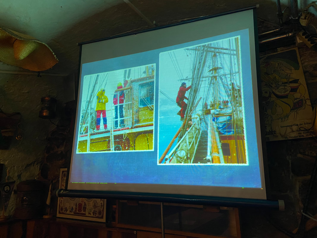 Das gemütliche Beisammensein wurde bereichert durch den Reisebericht von Stella und Lars, die im Juni mit der Abel Tasman auf einem "Entschleunigungs-Törn" in der Dänischen Südsee unterwegs waren. Die Abel Tasman (vormalige Namen: Hermann, Laksen, Atlantis) ist ein Zweimastschoner, der 1913 für die segelnde Frachtfahrt auf der Nord- und Ostsee gebaut und im Winter 1989 zu einem komfortablen Charterschiff umgebaut wurde.